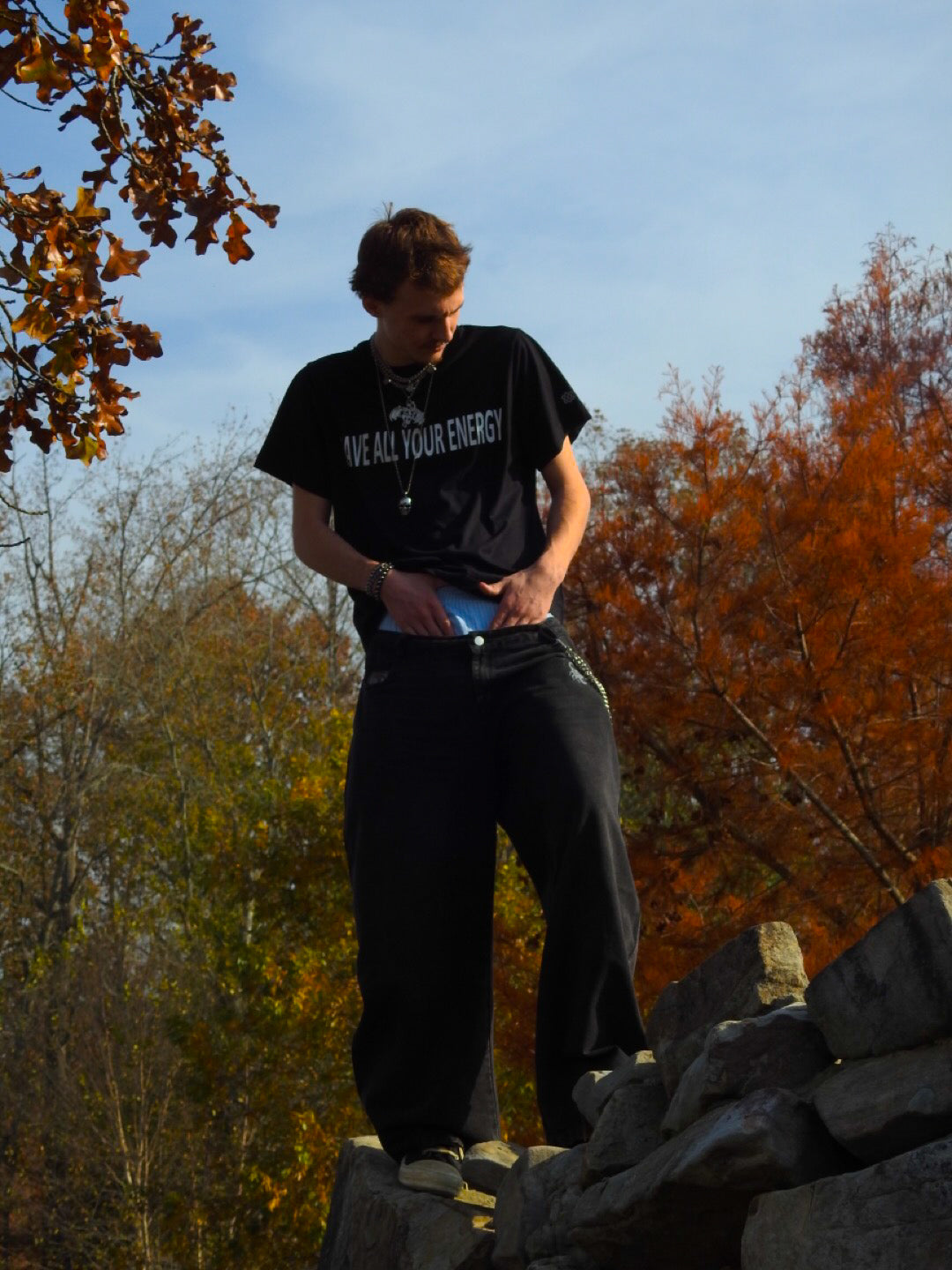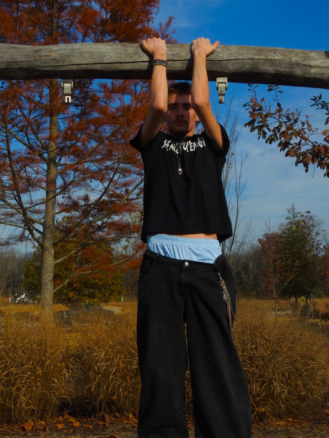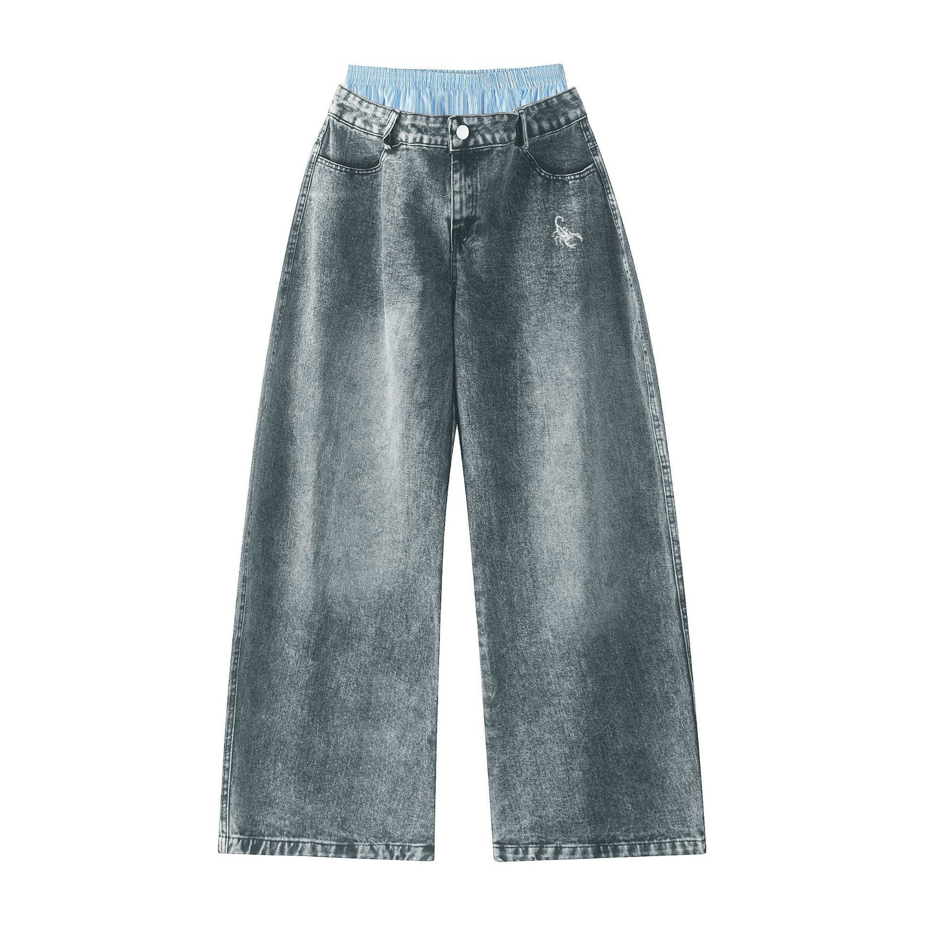 Unisex Double Waist Design Wide Leg Jeans